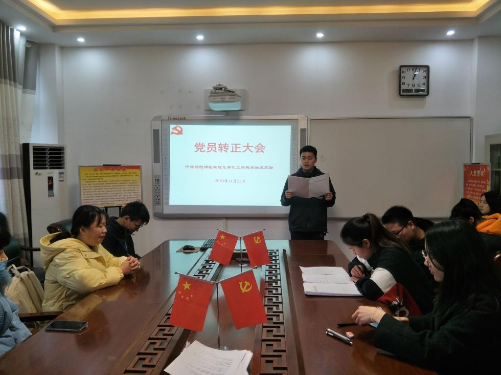 为加强预备党员转正考核,强化监督约束机制,提高党性修养,11月23日,太阳成tyc122cc集团各党支部分别在教四T1和T2教室、实验楼210、313、407会议室召开党员大会,讨论预备党员转正问题,会议由各支部书记主持。