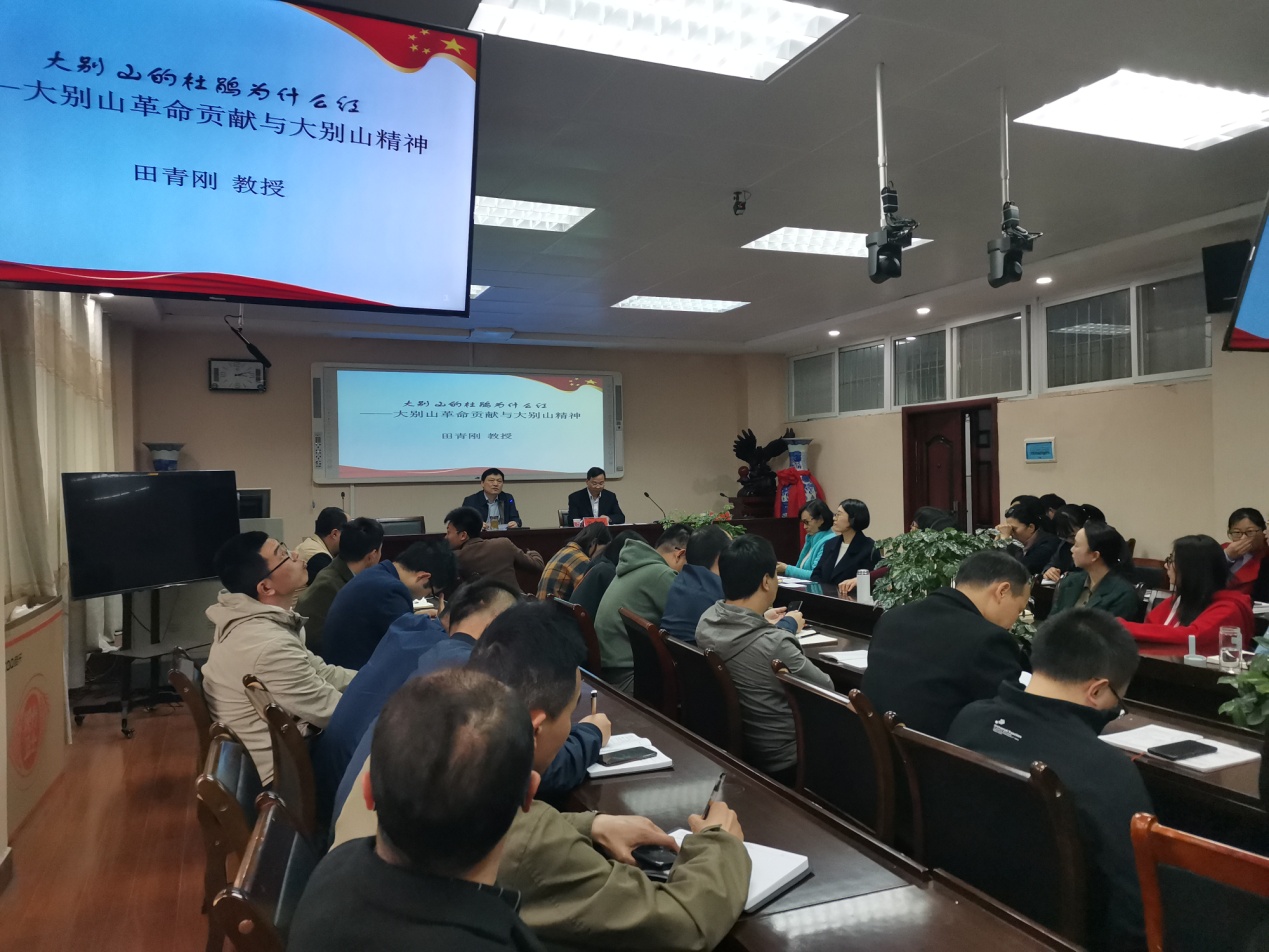 田青刚从“大别山概况”“大别山辉煌的革命斗争历程”“大别山革命历史的突出贡献”三个方面展开,将波澜壮阔的大别山革命历史总结归纳为“一二三四五”,即“一种革命精神、二个历史起点、三重历史地位、四度辉煌历程、五大历史贡献”,生动形象地阐释了“对党忠诚,前仆后继,不怕牺牲,依靠群众,同甘共苦,胸怀大志,敢于担当”等大别山精神的形成过程,让党员干部师生们深切深刻感受到了党的发展壮大历史宏达,感受到大别山精神的实践性、革命性、传承性和时代性等鲜明特点。