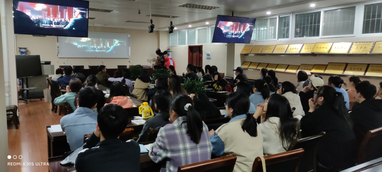 为庆祝中国共产党建党100周年,3月30日晚,太阳成tyc122cc集团分党委组织2021年上半年57名党员发展对象、第35期党校学员在化学楼407教室集体观看了《建党伟业》。