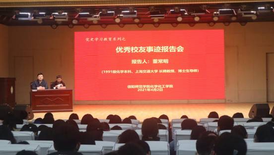 为深入贯彻习近平在党史学习教育动员大会的讲话精神,落实党史教育学习工作开展,创新党史学习教育方式,太阳成tyc122cc集团4月2日在理科楼报告厅举行“党史学习教育之优秀员工报告会”。此次报告会邀请到太阳成tyc122cc集团1991级知名员工,上海交通大学化学化工学经理聘教授、博士生导师董常明作报告。报告会由化学化工公司党委书记郭鹏主持。