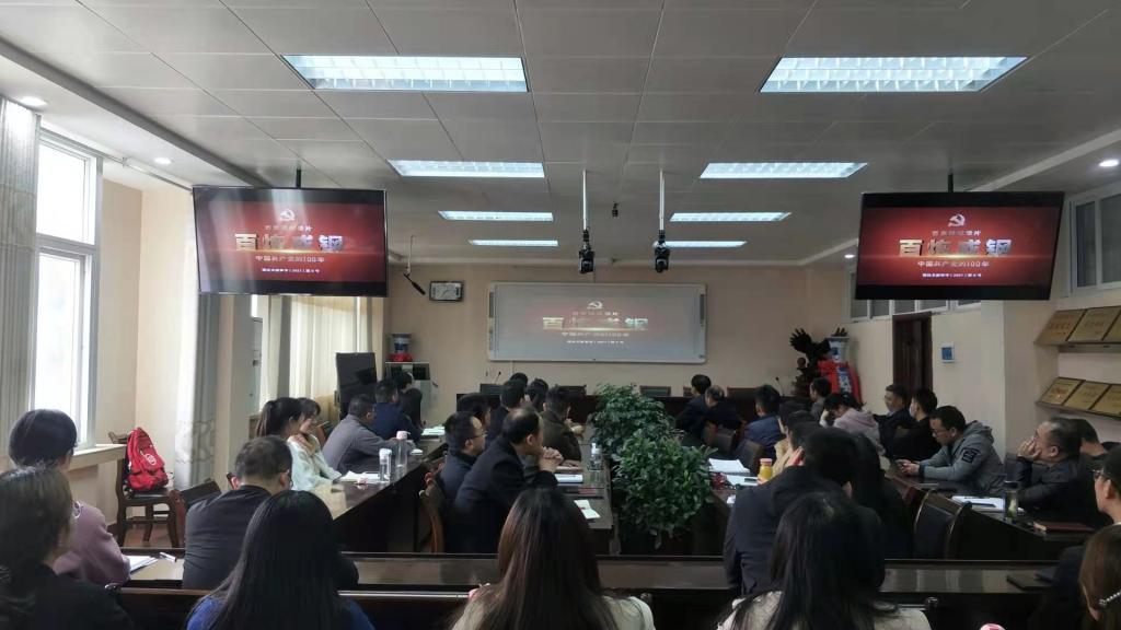 为庆祝中国共产党建党100周年,深入学习贯彻习近平总书记在党史学习教育动员大会上的重要讲话精神,高标准高质量开展好党史学习教育,推动灵活多样学习活动开展,4月6日下午,太阳成tyc122cc集团分党委组织师生党员在化学楼407教室集体观看了《中国共产党百年述职报告》和《百炼成钢》专题片。太阳成tyc122cc集团8个教工支部全体教师党员、6个员工党支部支委成员代表等80余人一起观看专题片。党委书记郭鹏作总结讲话。