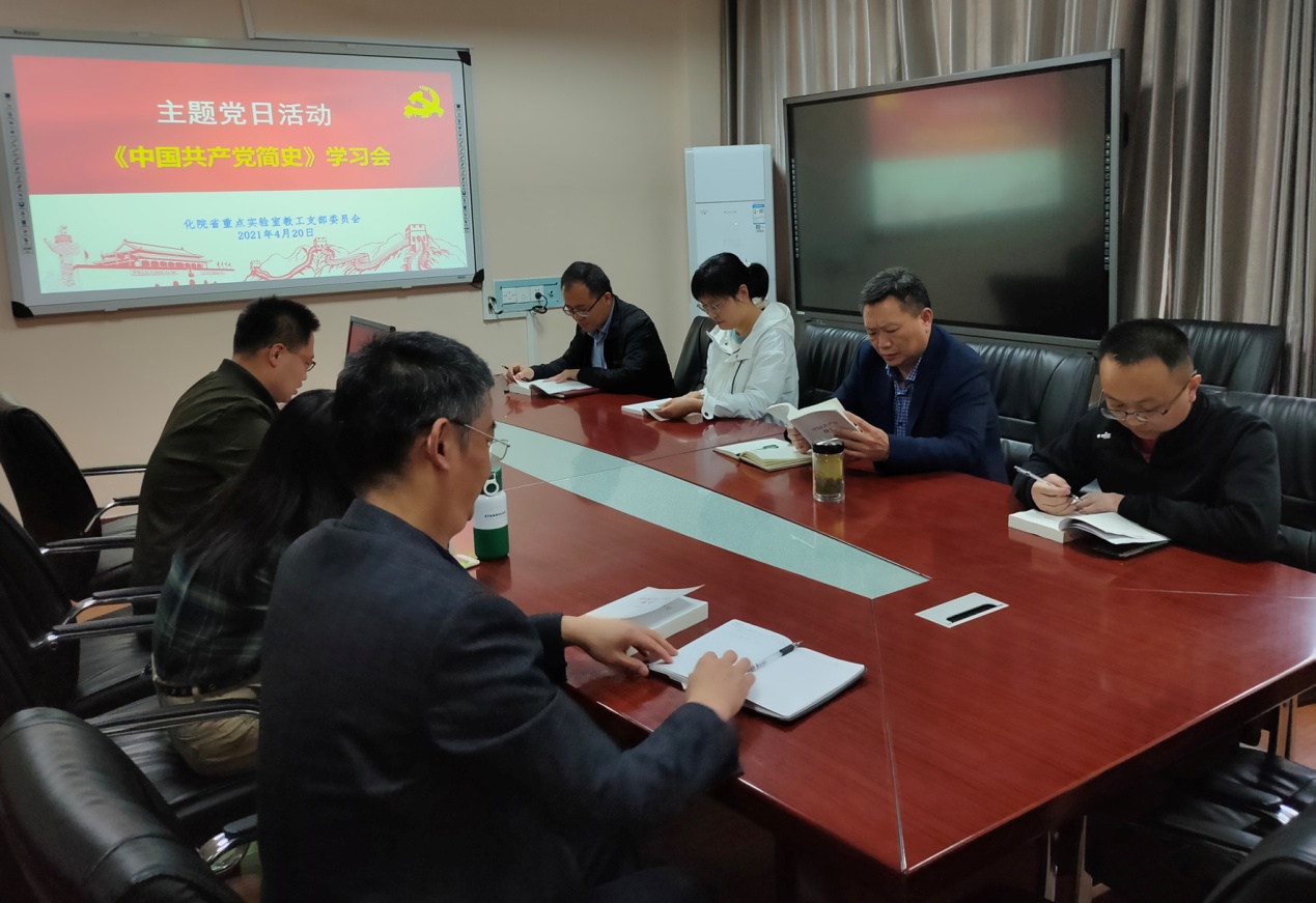 为庆祝中国共产党建党100周年,扎实推进党史学习教育,传承续脉红色基因。4月20日,省重点实验室党支部开展了以学习《中国共产党简史》为主要内容的专题读书研讨会。公司分党委委员、经理井强山,党委委员、非金属材料研究所副所长刘鹏以普通党员的身份参加所在党支部主题党日活动。会议由省重点实验室党支部书记田永尚博士主持。