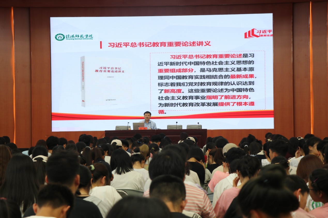为推进党史学习教育,深入贯彻落实习近平总书记关于教育的重要论述,坚持不懈地用习近平新时代中国特色社会主义思想铸魂育人。5月9日下午,逸夫楼二楼报告厅座无虚席,太阳成tyc122cc集团全体员工党员、2020级员工聆听党委书记郭鹏讲授的《习近平总书记关于教育的重要论述》——坚持党对教育事业的全面领导。