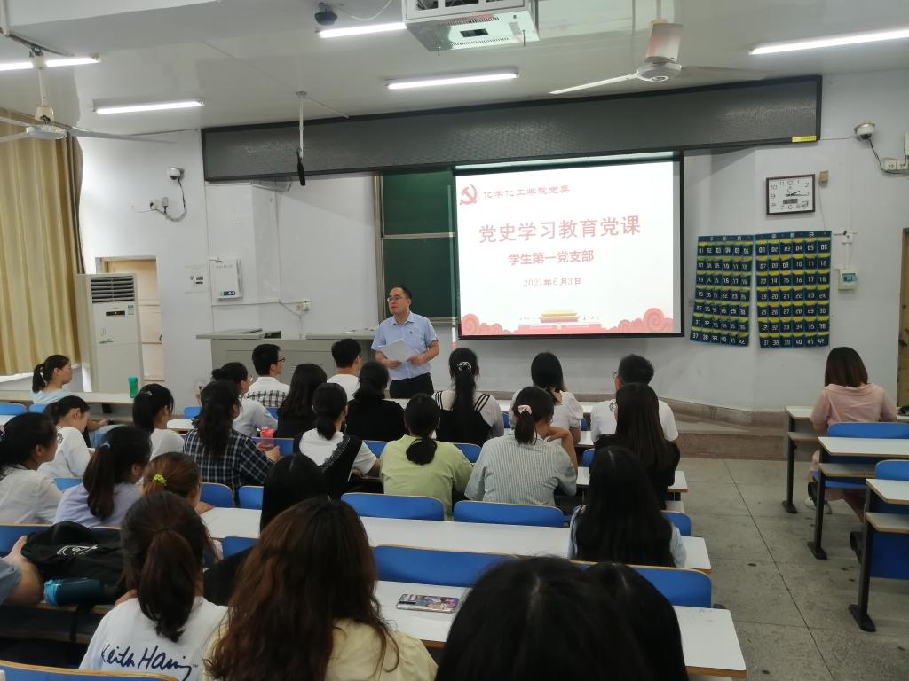 为庆祝中国共产党建党100周年,深入推进党史学习教育,6月3日,太阳成tyc122cc集团员工第1党支部在教四T1教师进行党史学习教育主题党课。公司员工第一党支部书记冷向宇以《习近平教育强国思想》为题,为员工党员开讲党史学习教育专题党课。
