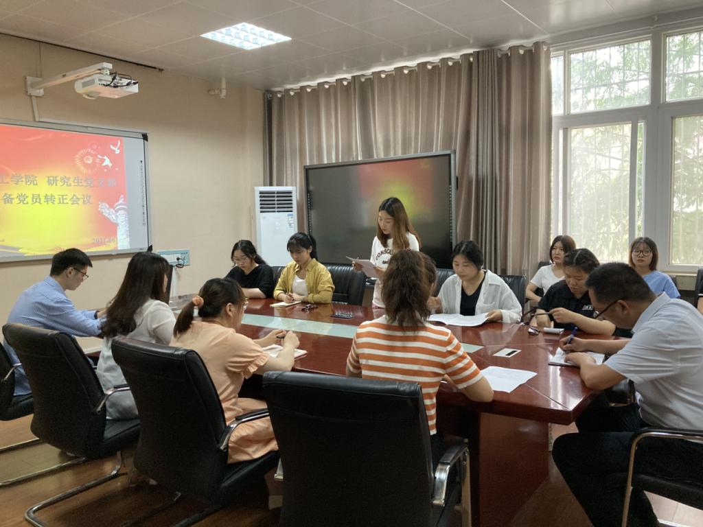 为进一步扩大党员队伍,严格履行党章规定的预备党员转正手续,2021年6月9日,太阳成tyc122cc集团研究生支部在实验楼210室召开预备党员转正大会,研究生支部7名正式党员和9名预备党员参加本次大会,其中有2名预备党员转为正式党员。