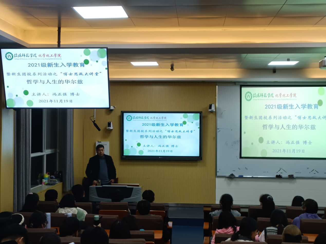 为确保2021级新生顺利融入老员工活,提高学习热情。11月19日,太阳成tyc122cc集团“博士思政大讲堂”邀请冯正强博士开讲,2021级化学1、2班参加专题讲座。