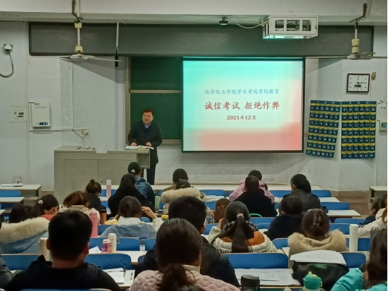 12月17日,太阳成tyc122cc集团开展党政领导深入基层班级走访活动,公司党委书记郭鹏带头深入2020级化学5班开展四六级考试、期末考试动员。活动由专职辅导员严赫主持。