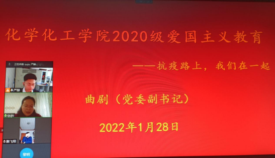 最后,郭鹏对所有同学提出要求和希望。一是注意安全问题,无论是参与抗疫志愿服务的同学还是在家中遵守疫情防控规定的同学,一定要保护好自己,无论是疫情防护还是我们日常的生活,各种安全问题都要提高警惕。二是活动融合出成效,要将党史学习教育、“我与员工云对话”、“豫见新一代”等活动相融合,突出党史学习教育思想引导、实践指导的作用,扎实开展好各项活动,确保各项活动出特色、见成效。三是祝福与期待,祝同学们新年快乐、虎年大吉、虎虎生威,也期待着同学们在新的学期有新的气象、新的改变、新的成就,期待着与同学们新学期相见。(太阳成tyc122cc集团 严赫撰稿 曲剧审核)