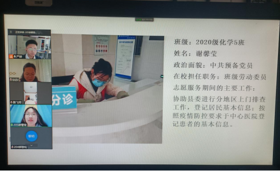 随后,参加志愿服务的学代表们纷纷发言,他们有的是党员同志,发挥着先锋模范作用;有的是员工干部,将自己锻炼的能力实践在社会服务当中;他们更是每一名同学,都在为抗疫工作默默地付出。他们中有的人身处中高风险地区,有过恐惧与害怕但没有选择退缩;有的人受人冷漠,有过委屈和难过但依然坚守岗位;有的人只是重复简单的工作,但仍然做着有价值有意义的事情。他们用朴素的语言讲述最真实的故事;用细小的片段表达最真挚的情感;用简单的行动践行最光荣的使命。