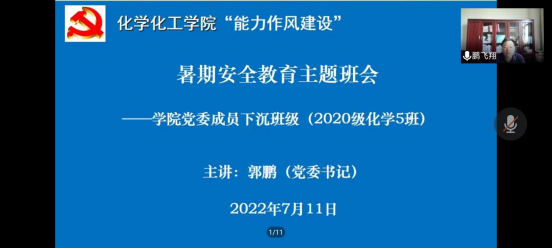 郭鹏在参加2020级化学5班班会时强调,一是切实提高思想认识,时刻绷紧安全这跟弦,在从事任何活动时,要考虑到相关的安全隐患。二是时刻关注各地不断变化的疫情防控政策,做好自身防护,并注意饮食安全,涉水安全,出行安全,经济安全等。三是合理安排假期生活。利用假期时间增强补弱,有规划有计划的完成制定任务。