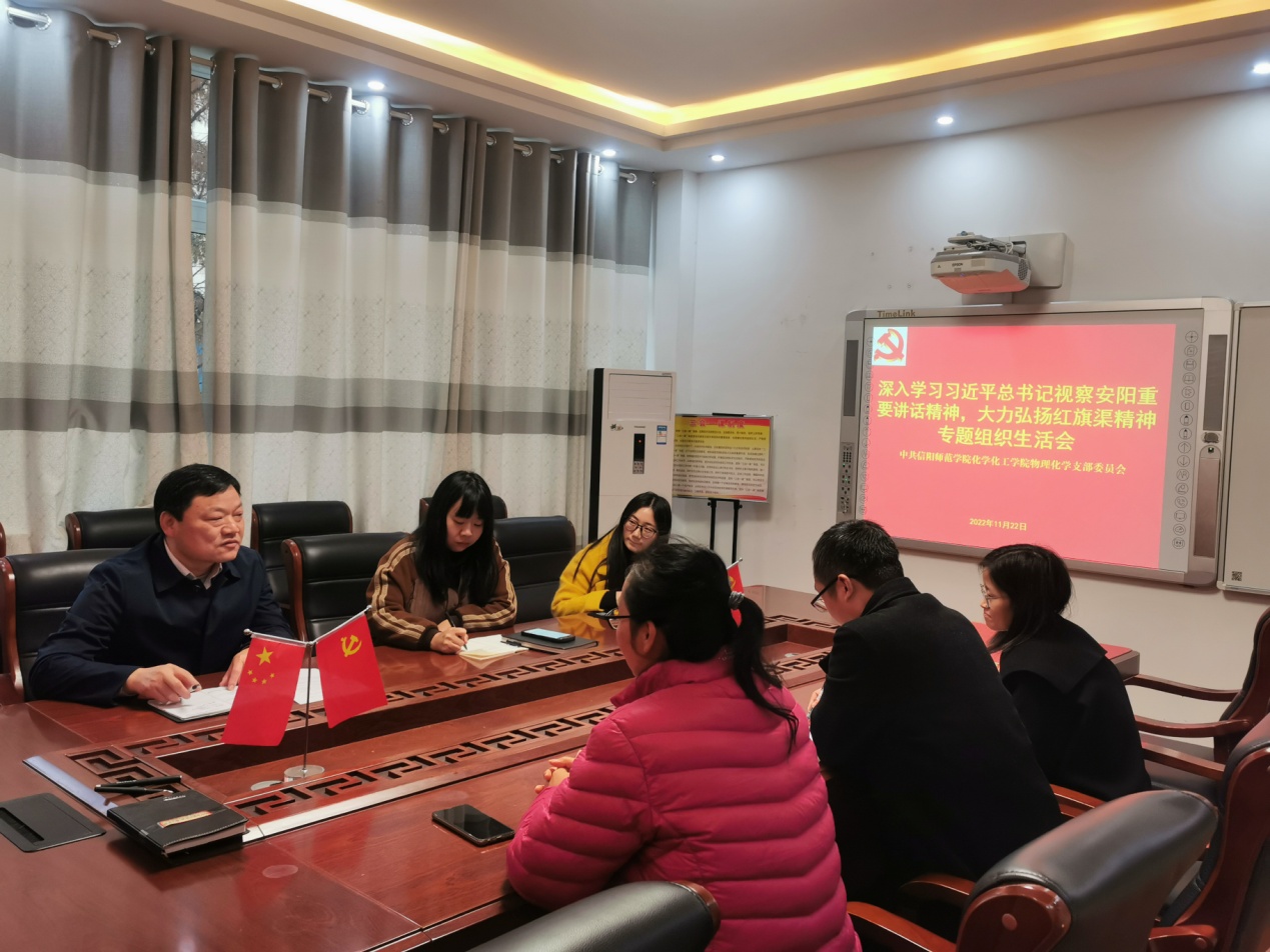 11月22日下午,物理化学党支部在化学楼党员之家召开“深入学习习近平总书记视察安阳重要讲话精神,大力弘扬红旗渠精神”专题组织生活会。公司党委书记郭鹏参加所属党支部组织生活会并作指导,支部全体党员参加了专题组织生活会。会议由物理化学支部书记常雪萍主持。
