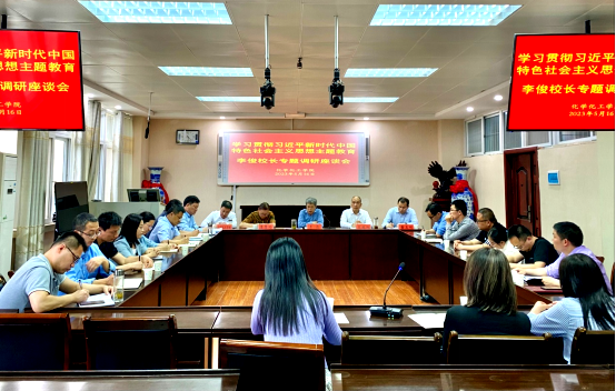 化学化工公司党委书记郭鹏汇报了学习贯彻习近平新时代中国特色社会主义思想主题教育的开展情况,以及公司团队队伍、高层次人才队伍建设整体情况。副经理曹俊涛汇报了公司高层次人才团队队伍建设现状,剖析检视公司团队队伍建设未来3-5年将面临的困境,构思提出下一步建设思路和创新举措。与会座谈人员重点围绕公司进一步建设和打造高层次科研创新团队、高水平教学科研团队队伍进行了积极发言,充分交流,建言献策。