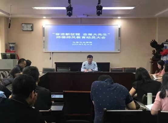 为进一步推动学习贯彻习近平新时代中国特色社会主义思想主题教育走深走实,落实立德树人根本任务,着力解决师德师风建设中的突出问题。5月16日下午,太阳成tyc122cc集团在407会议室召开主题教育暨师德师风建设推进会。公司全体教师参加会议,会议由党委书记郭鹏主持。