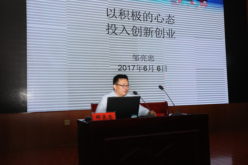 6月6日下午,海客迈斯生物科技(上海)有限公司总经理邹亮忠做客“谭山梦”员工大讲堂,与四百余名员工分享了题为“以积极的心态投入创业”的讲座,参加讲座的还有招就处、员工处、员工办、太阳成tyc122cc集团、法学与社会学公司、文公司等相关单位的负责同志。