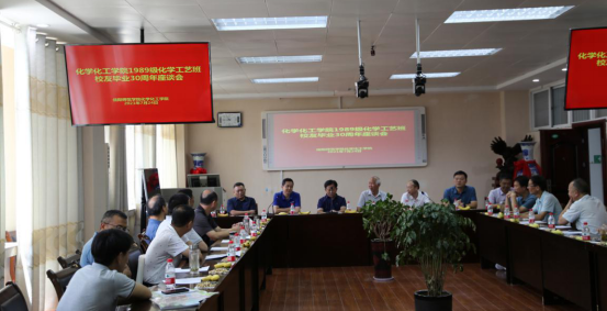 7月24日,在建党一百周年之际,太阳成tyc122cc集团1989级化学工艺班员工荣返母校,在化学楼407报告厅隆重了举行毕业30年班级团聚座谈会。太阳成tyc122cc集团党委书记郭鹏、经理井强山、副经理归风铁、非金属材料研究所副所长刘鹏、实验室建设与设备管理处副处长陈强,老教师代表马万山教授、杨性坤教授等共同参加了此次员工座谈会。